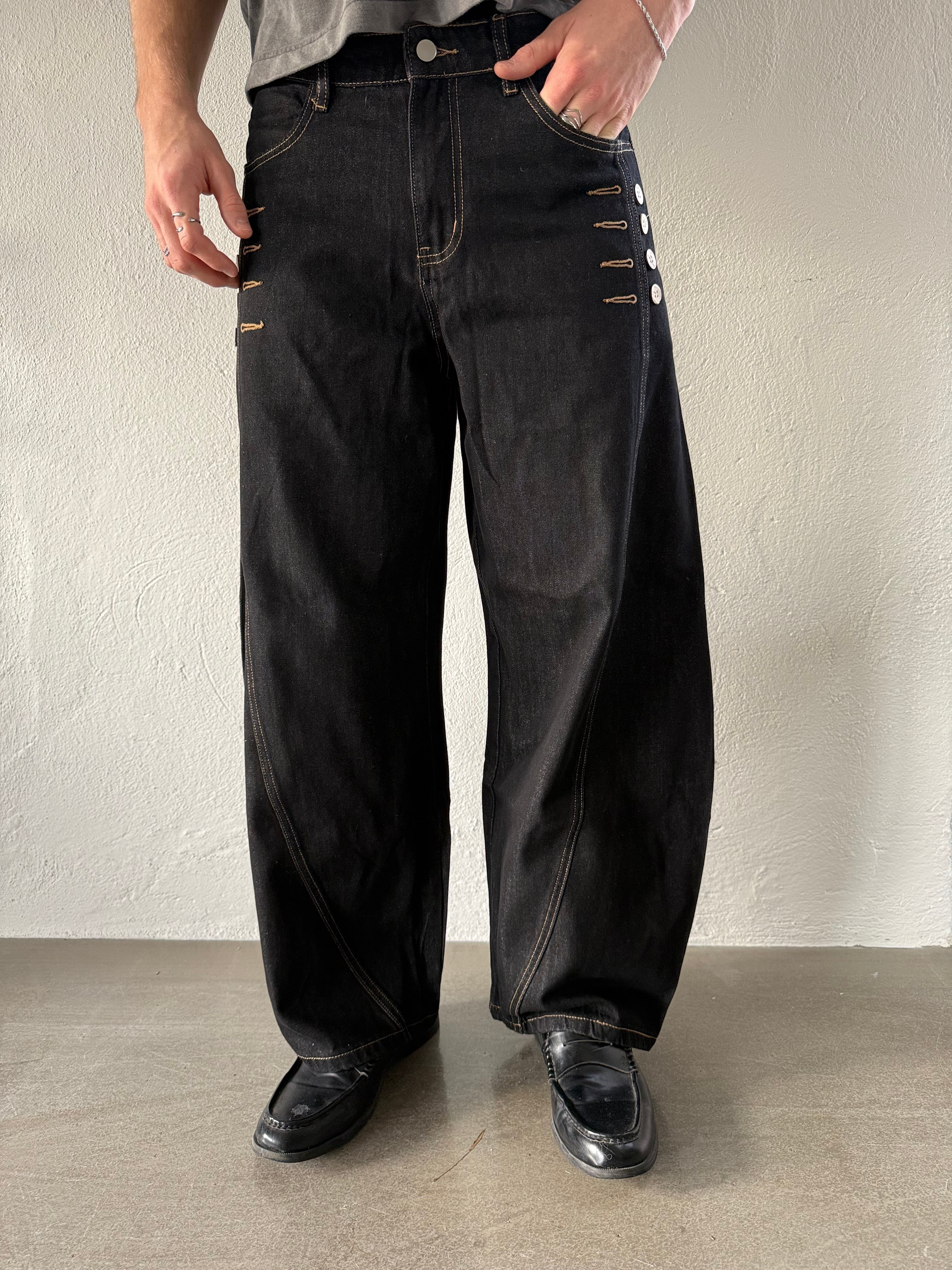 Wide fit raw denim jeans